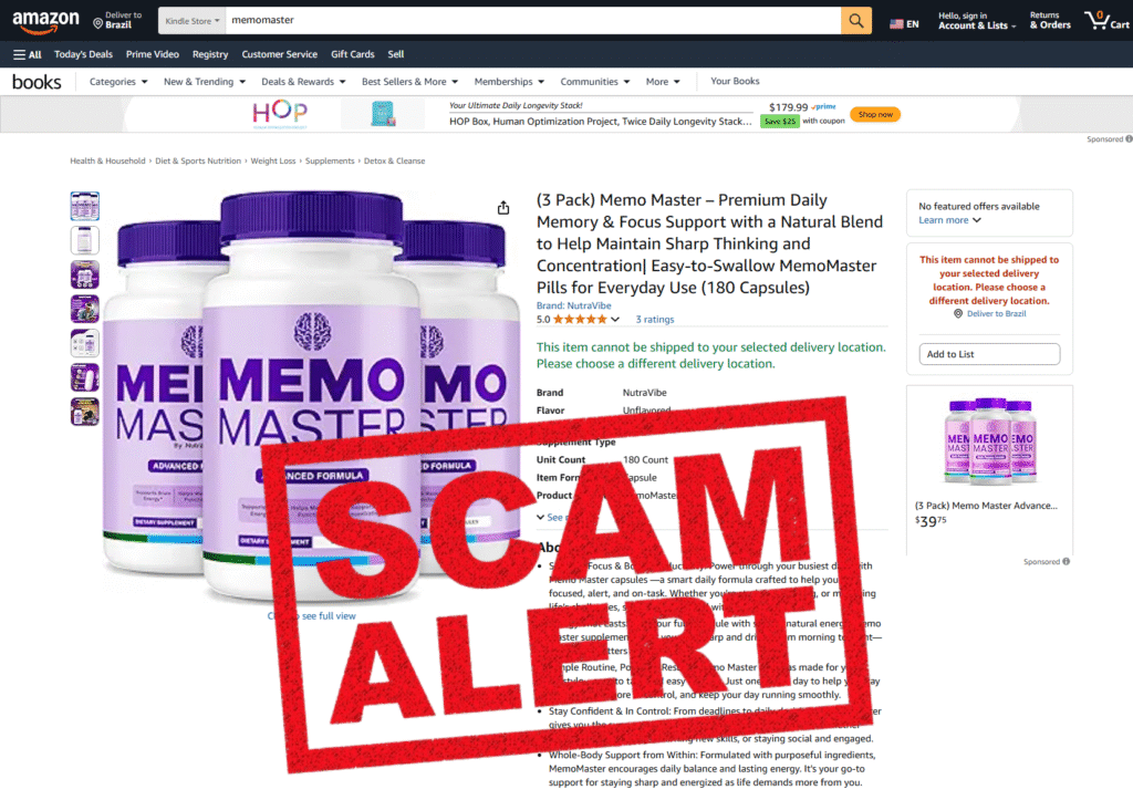 After conducting extensive research across multiple trusted websites, we discovered countless complaints from people who either received the wrong bottle or never got their order at all. Some even reported being tricked by fake vendors pretending to sell MemoMaster.